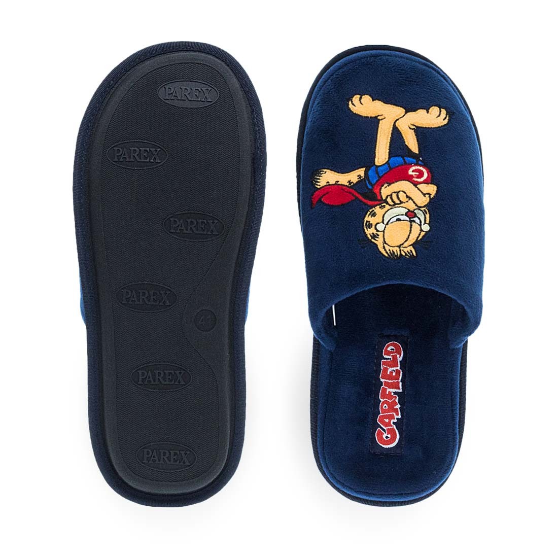 Ανδρικές παντόφλες σπιτιού Garfield. Ανδρικές παντόφλες Garfield σε γκρι και μπλε χρώμα με κεντημένο σχέδιο του χαρακτήρα, προσφέροντας χιούμορ και στυλ στο σπίτι.