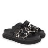 EXE Shoes Γυναικεία Παντόφλας FLATFORMS 03R-340 Μαύρο off white GIRAFFE ΜΑΥΡΟ ΔΕΡΜΑ U403R34021L90