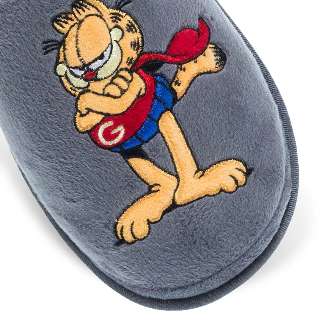 Ανδρικές παντόφλες σπιτιού Garfield. Ανδρικές παντόφλες Garfield σε γκρι και μπλε χρώμα με κεντημένο σχέδιο του χαρακτήρα, προσφέροντας χιούμορ και στυλ στο σπίτι.
