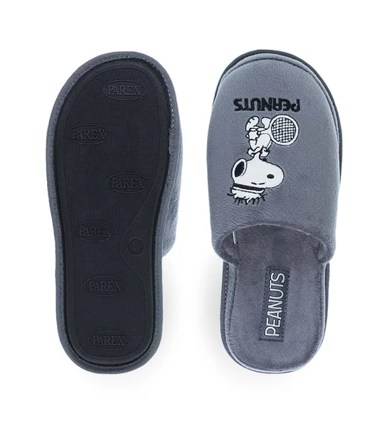 Ανδρικές παντόφλες σπιτιού Peanuts. Γκρι και μπλε ανδρικές παντόφλες Snoopy Peanuts με κεντημένο σχέδιο και μαλακή επένδυση – ιδανικές για άνεση στο σπίτι.